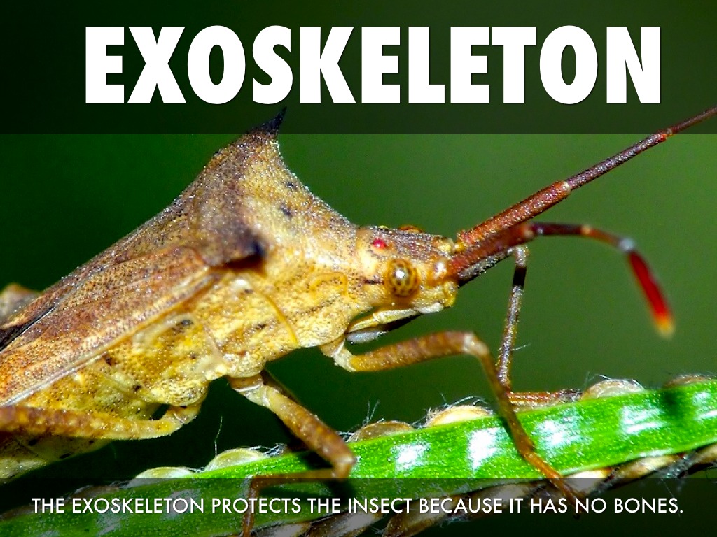 THE EXOSKELETON PROTECTS THE INSECT BECAUSE IT HAS NO BONES.