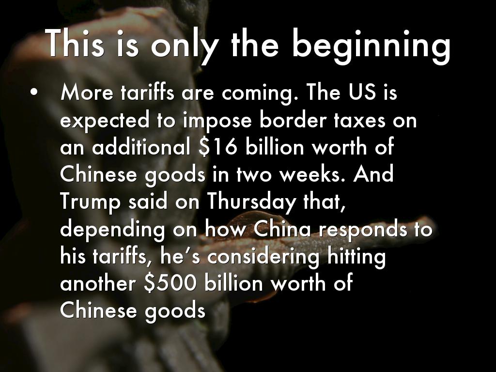 More tariffs are coming. The US is expected to impose border taxes on an additional $16 billion worth of Chinese goods in two weeks. And Trump said on Thursday that, depending on how China responds to his tariffs, he’s considering hitting another $500 billion worth of Chinese goods