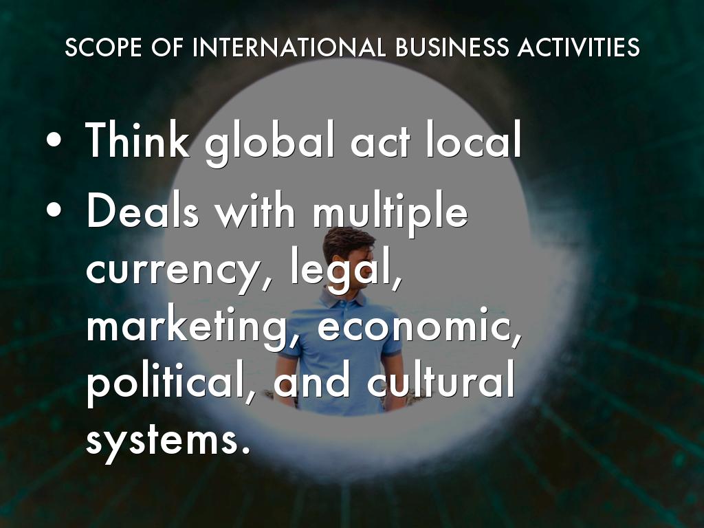The distinguishing feature of international business is that international firms operate in environments that are often ambiguous, contradictory, and subject to rapid change as compared to the domestic environment.