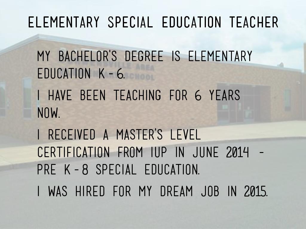 I received a master's level certification from IUP in June 2014 - Pre K-8 Special Education.