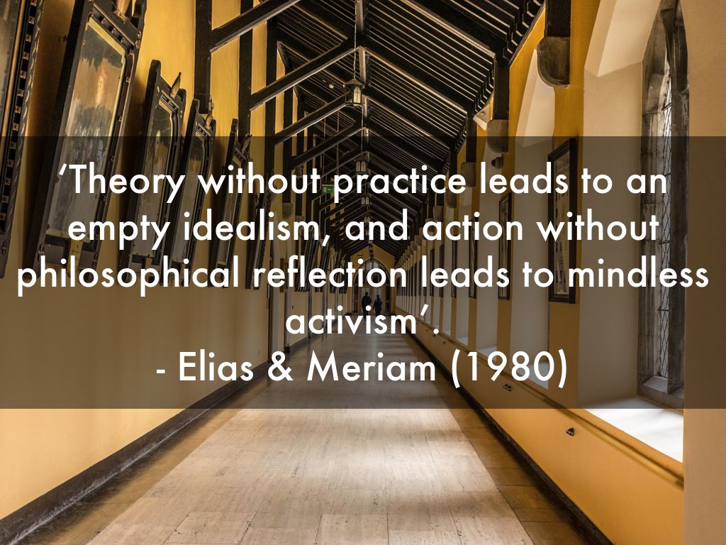 ‘Theory without practice leads to an empty idealism, and action without philosophical reflection leads to mindless activism’.