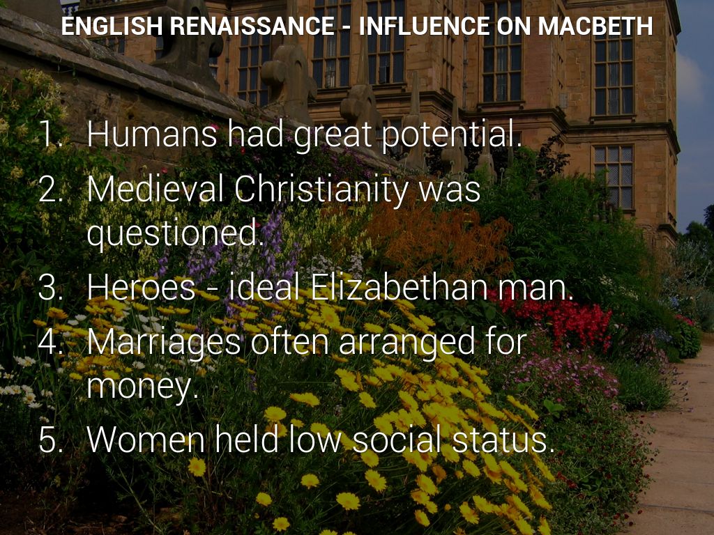 ENGLISH RENAISSANCE - INFLUENCE ON MACBETH