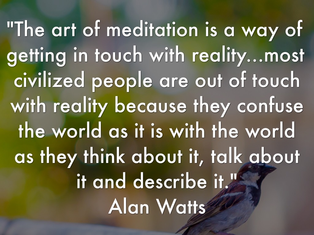 "The art of meditation is a way of getting in touch with reality...most civilized people are out of touch with reality because they confuse the world as it is with the world as they think about it, talk about it and describe it."