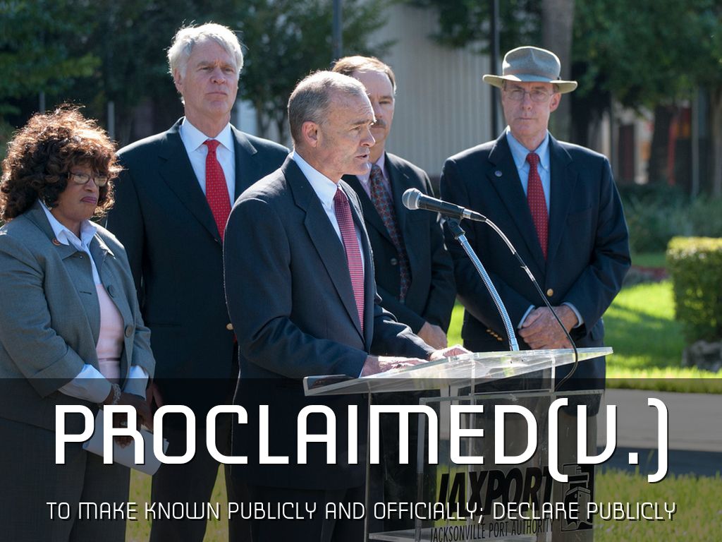 TO MAKE KNOWN PUBLICLY AND OFFICIALLY; DECLARE PUBLICLY