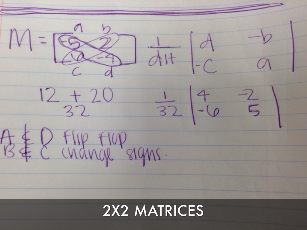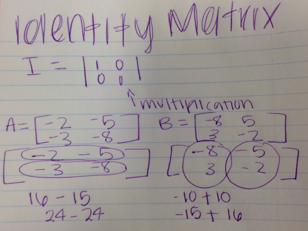 An inverse matrices is when you multiply two matrices together in the order AB or BA, and the result is the identity matrix, the matrices A and B are inverses.