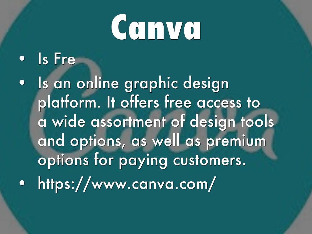 • Is an online graphic design platform. It offers free access to a wide assortment of design tools and options, as well as premium options for paying customers.