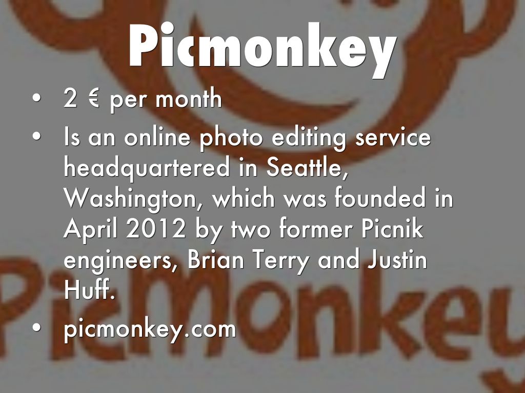 • Is an online photo editing service headquartered in Seattle, Washington, which was founded in April 2012 by two former Picnik engineers, Brian Terry and Justin Huff.