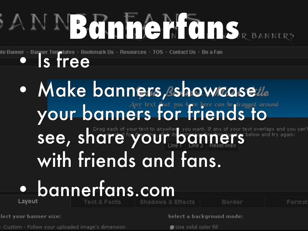 • Make banners, showcase your banners for friends to see, share your banners with friends and fans.