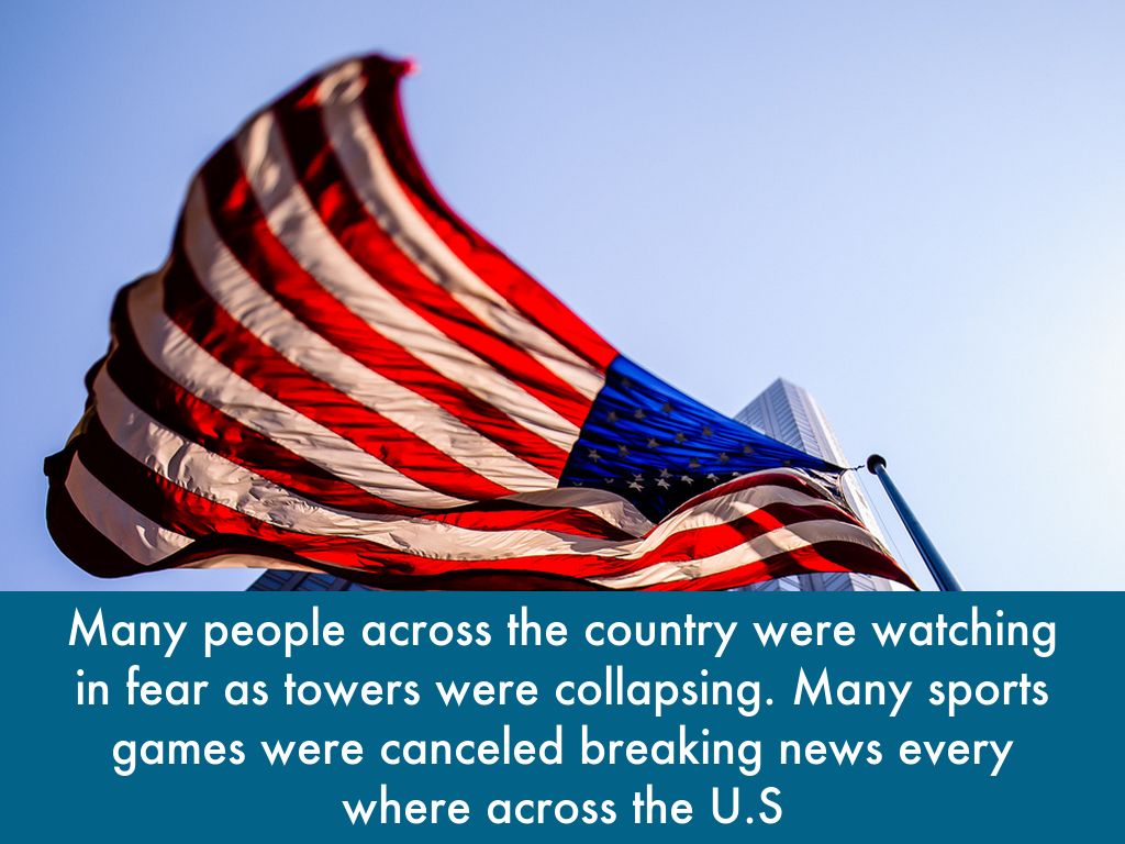 Many people across the country were watching in fear as towers were collapsing. Many sports games were canceled breaking news every where across the U.S