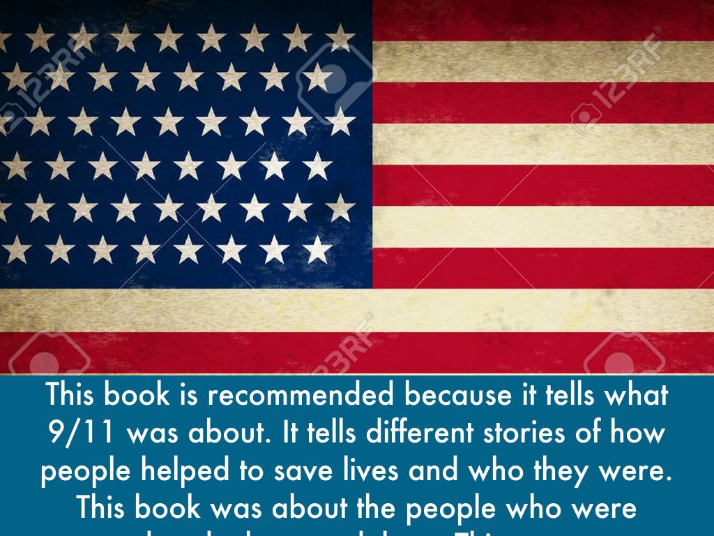 This book is recommended because it tells what 9/11 was about. It tells different stories of how people helped to save lives and who they were. This book was about the people who were saved and who saved them. This were true stories.