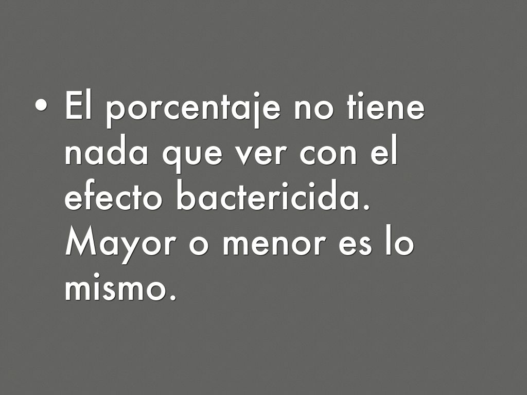El porcentaje no tiene nada que ver con el efecto bactericida. Mayor o menor es lo mismo.