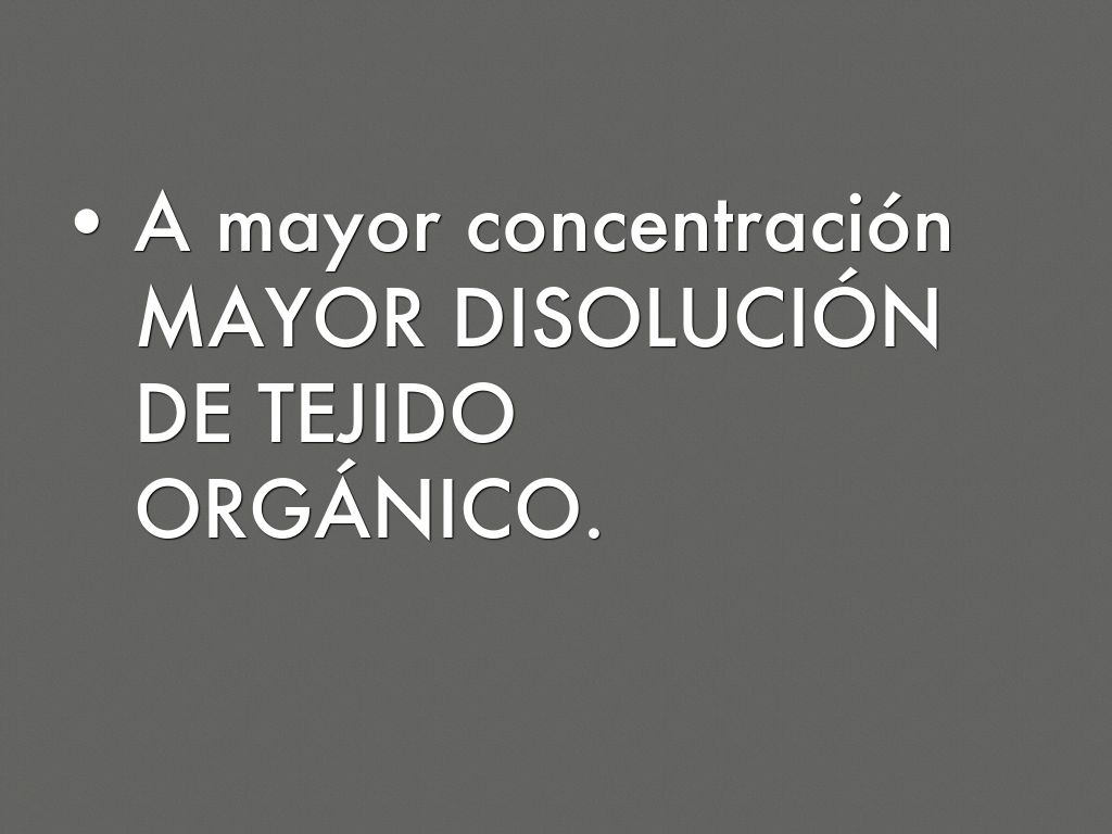 A mayor concentración MAYOR DISOLUCIÓN DE TEJIDO ORGÁNICO.