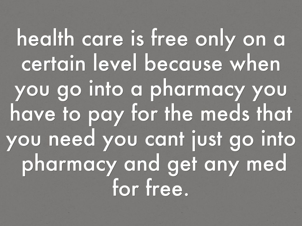 health care is free only on a certain level because when you go into a pharmacy you have to pay for the meds that you need you cant just go into pharmacy and get any med for free.