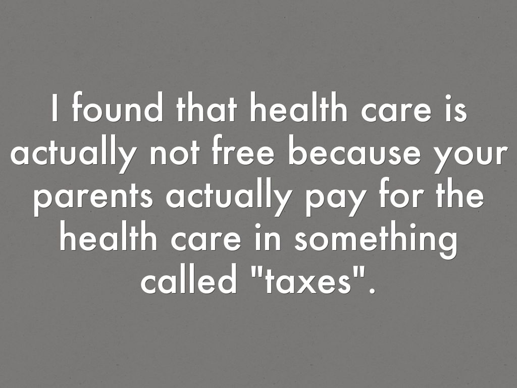 I found that health care is actually not free because your parents actually pay for the health care in something called "taxes".