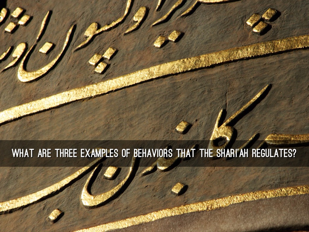 WHAT ARE THREE EXAMPLES OF BEHAVIORS THAT THE SHARI'AH REGULATES?