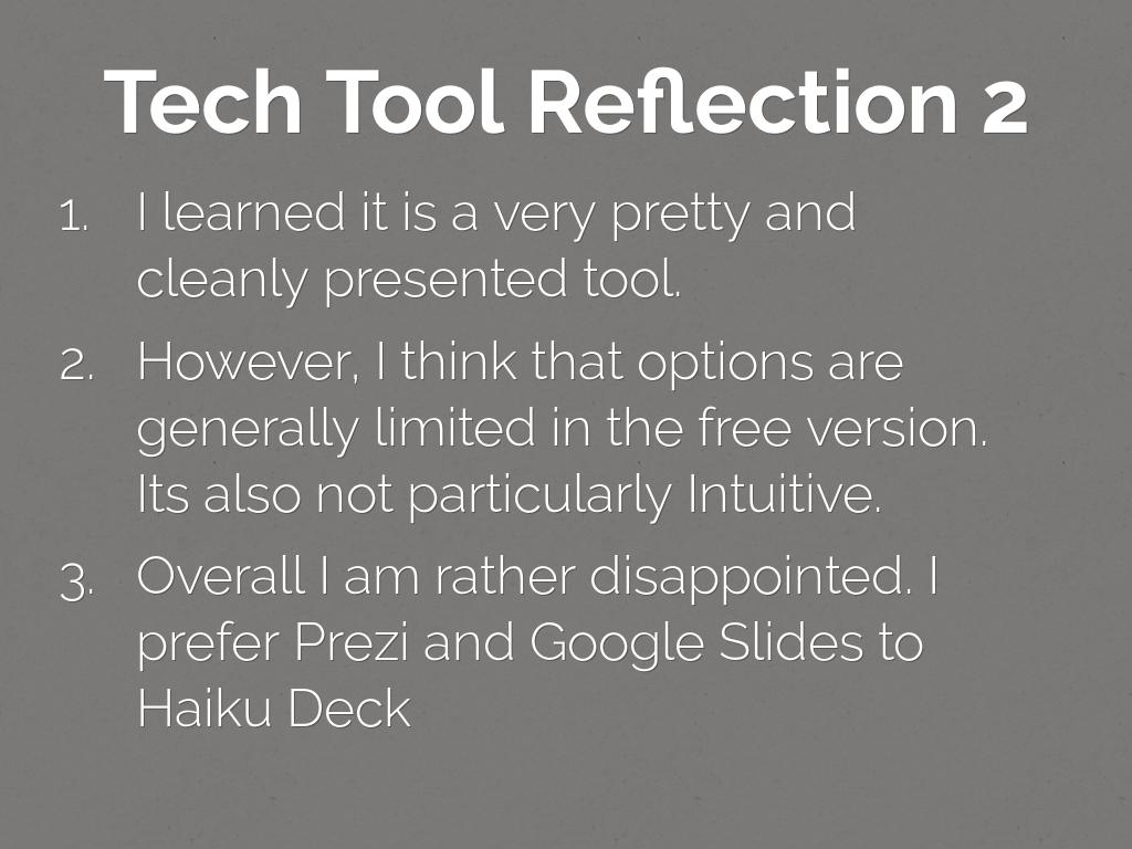 Overall I am rather disappointed. I prefer Prezi and Google Slides to Haiku Deck