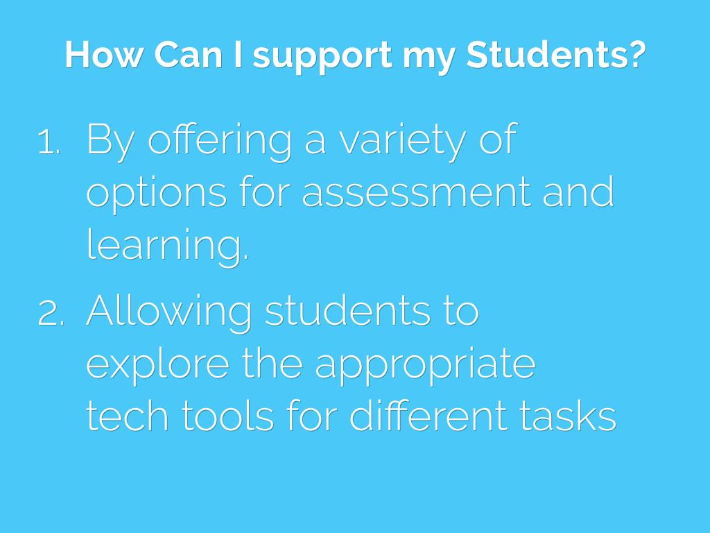 Allowing students to explore the appropriate tech tools for different tasks