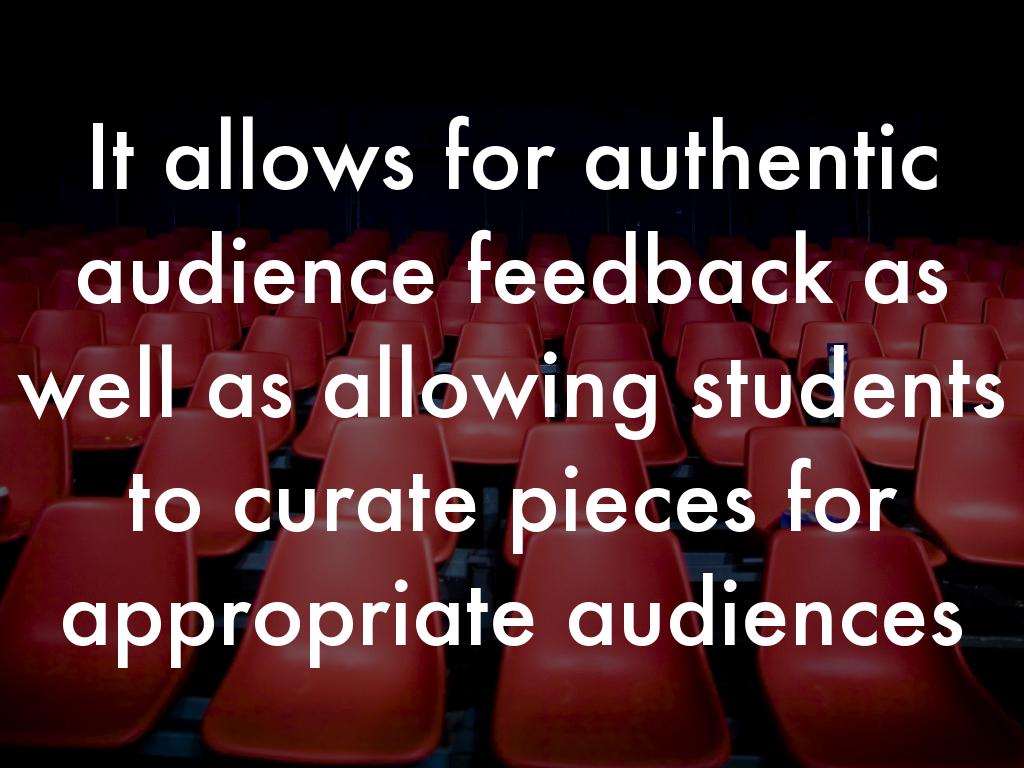 It allows for authentic audience feedback as well as allowing students to curate pieces for appropriate audiences