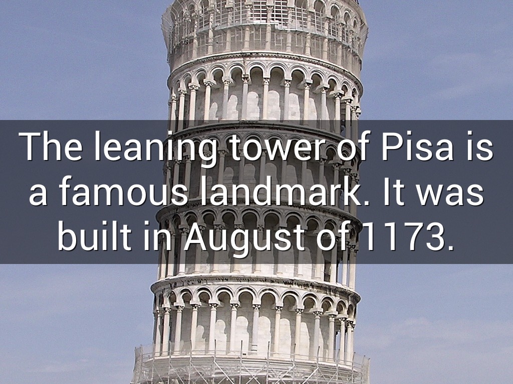 The leaning tower of Pisa is a famous landmark. It was built in August of 1173.