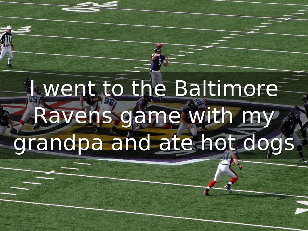 I went to the Baltimore Ravens game with my grandpa and ate hot dogs