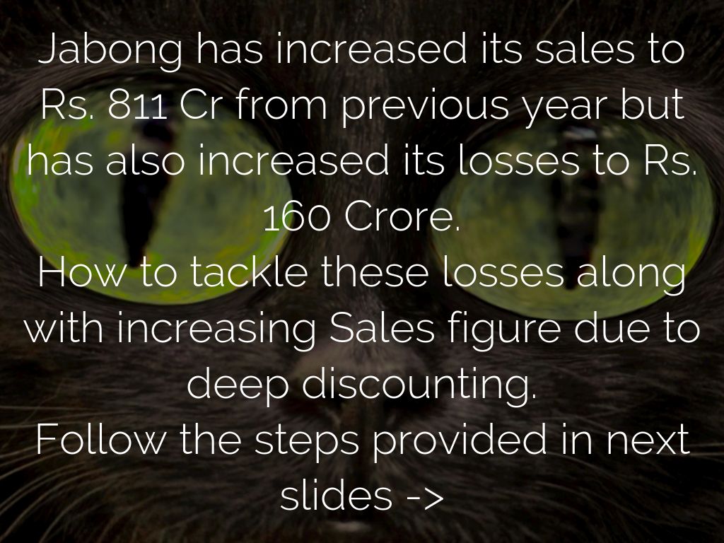 Jabong has increased its sales to Rs. 811 Cr from previous year but has also increased its losses to Rs. 160 Crore. How to tackle these losses along with increasing Sales figure due to deep discounting. Follow the steps provided in next slides ->