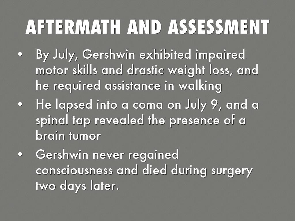 By July, Gershwin exhibited impaired motor skills and drastic weight loss, and he required assistance in walking
