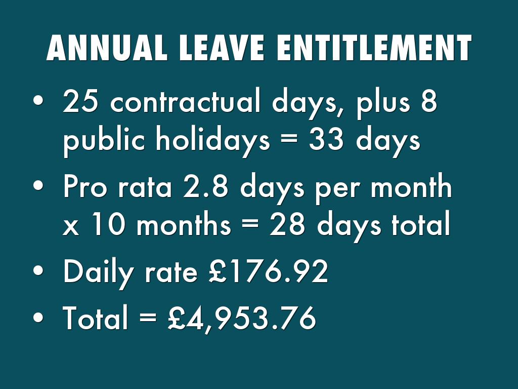 • Pro rata 2.8 days per month x 10 months = 28 days total