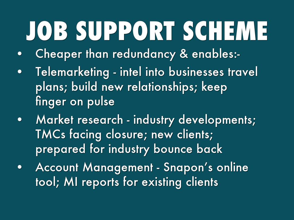 • Market research - industry developments; TMCs facing closure; new clients; prepared for industry bounce back