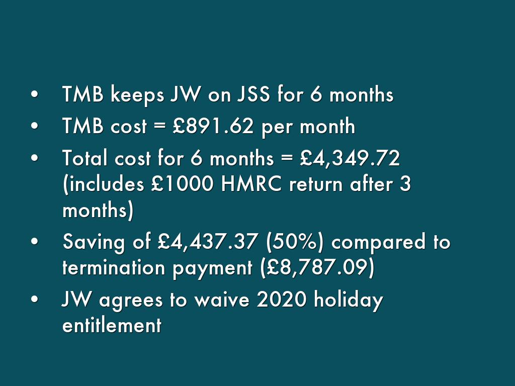 • Saving of £4,437.37 (50%) compared to termination payment (£8,787.09)