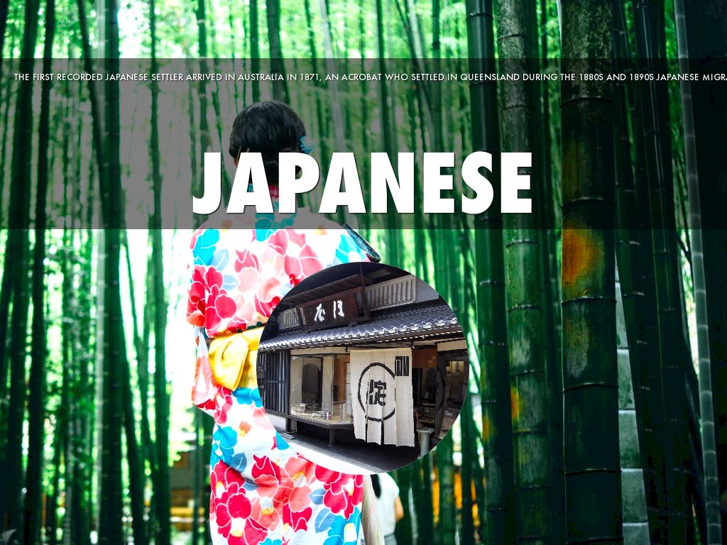 THE FIRST RECORDED JAPANESE SETTLER ARRIVED IN AUSTRALIA IN 1871, AN ACROBAT WHO SETTLED IN QUEENSLAND DURING THE 1880S AND 1890S JAPANESE MIGRANTS WORKED AS CREW FOR AUSTRALIAN PEARLERS IN NORTHERN AUSTRALIA