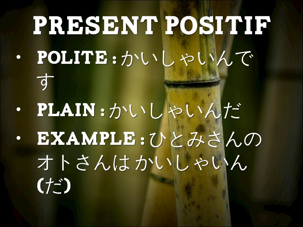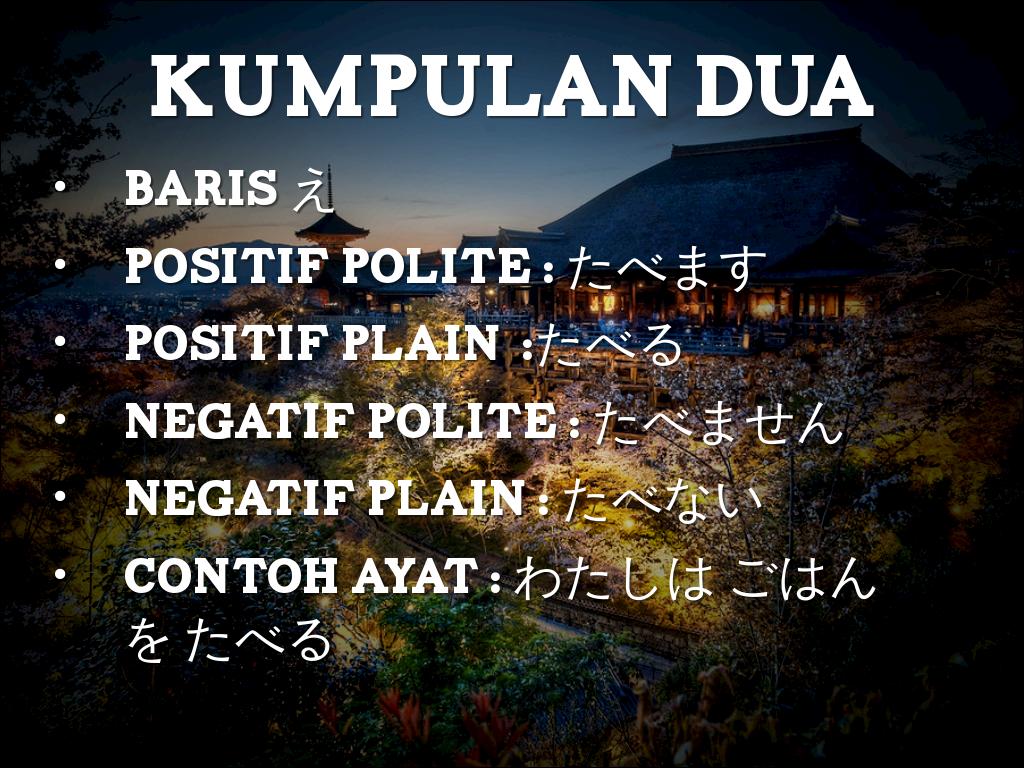 sudut info : baris い tukar kepada あ dan tambah ない di belakangnya