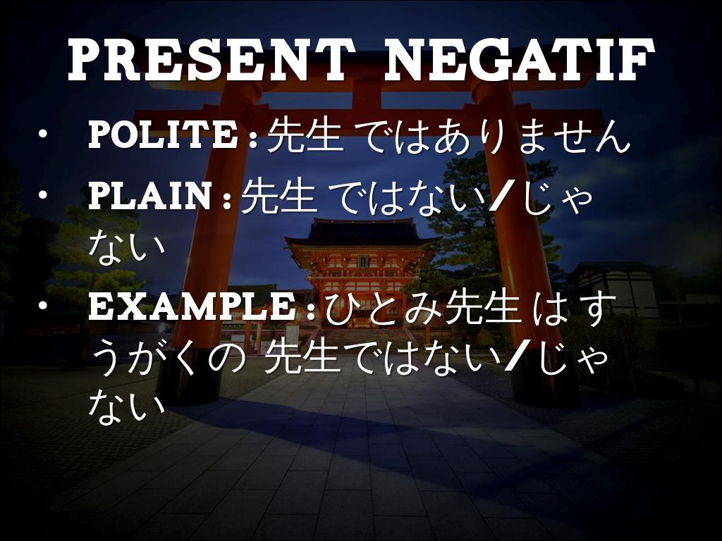 - examplE : ひとみ先生 は すうがくの 先生ではない/じゃない