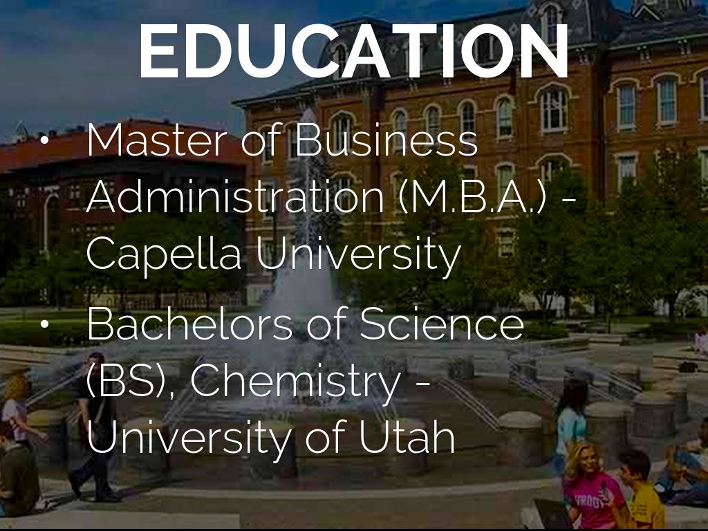 • Bachelors of Science (BS), Chemistry - University of Utah