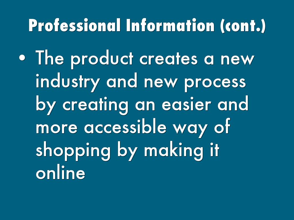 • The product creates a new industry and new process by creating an easier and more accessible way of shopping by making it online