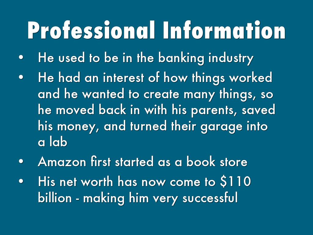 • He had an interest of how things worked and he wanted to create many things, so he moved back in with his parents, saved his money, and turned their garage into a lab