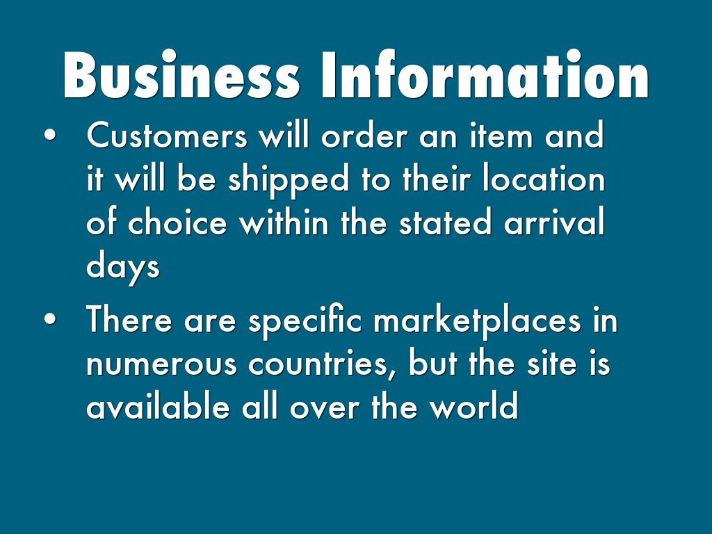 • Customers will order an item and it will be shipped to their location of choice within the stated arrival days