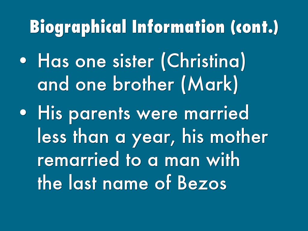 • His parents were married less than a year, his mother remarried to a man with the last name of Bezos