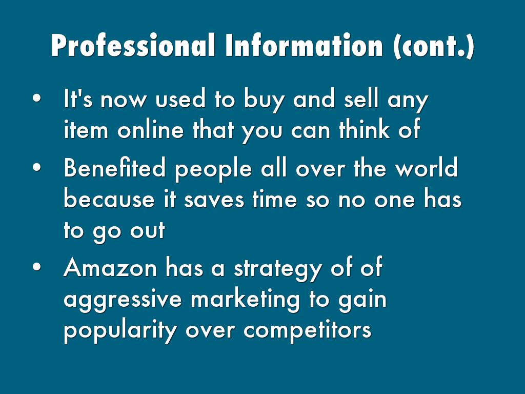 • Amazon has a strategy of of aggressive marketing to gain popularity over competitors