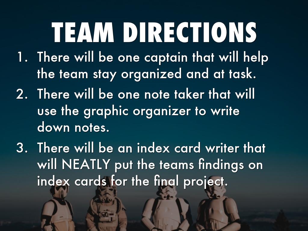 There will be an index card writer that will NEATLY put the teams findings on index cards for the final project.