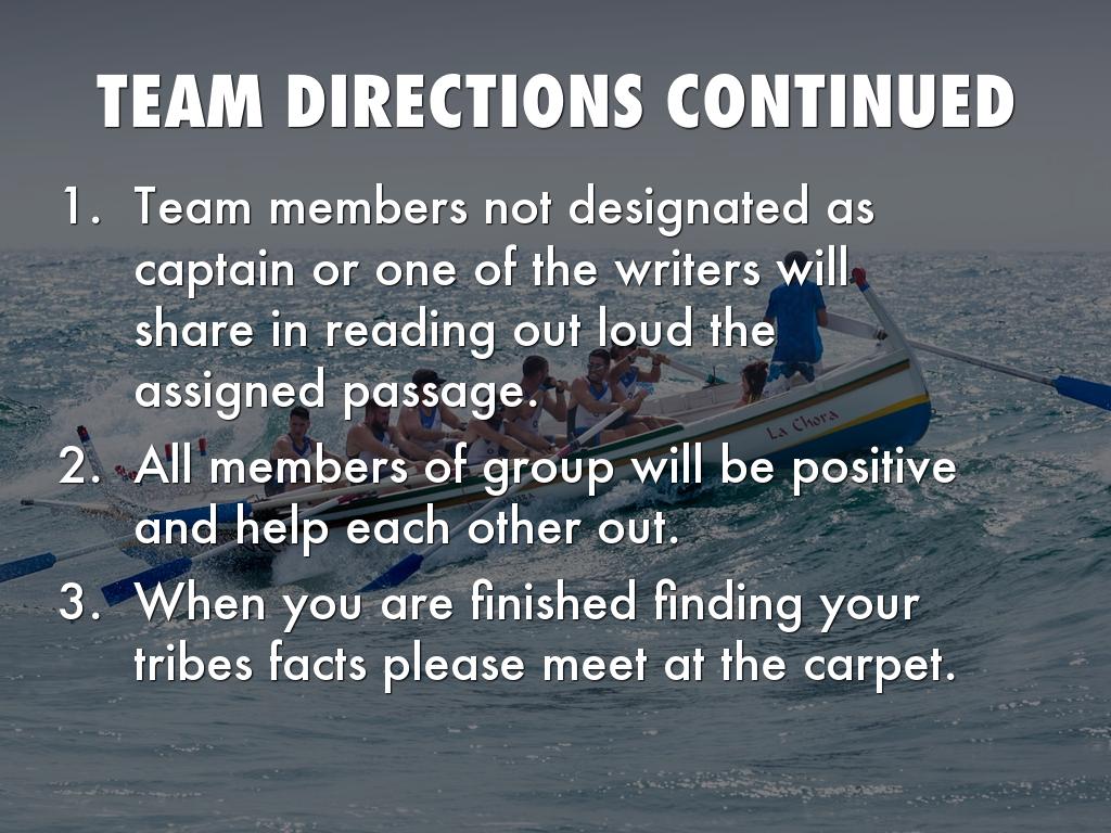 Team members not designated as captain or one of the writers will share in reading out loud the assigned passage.