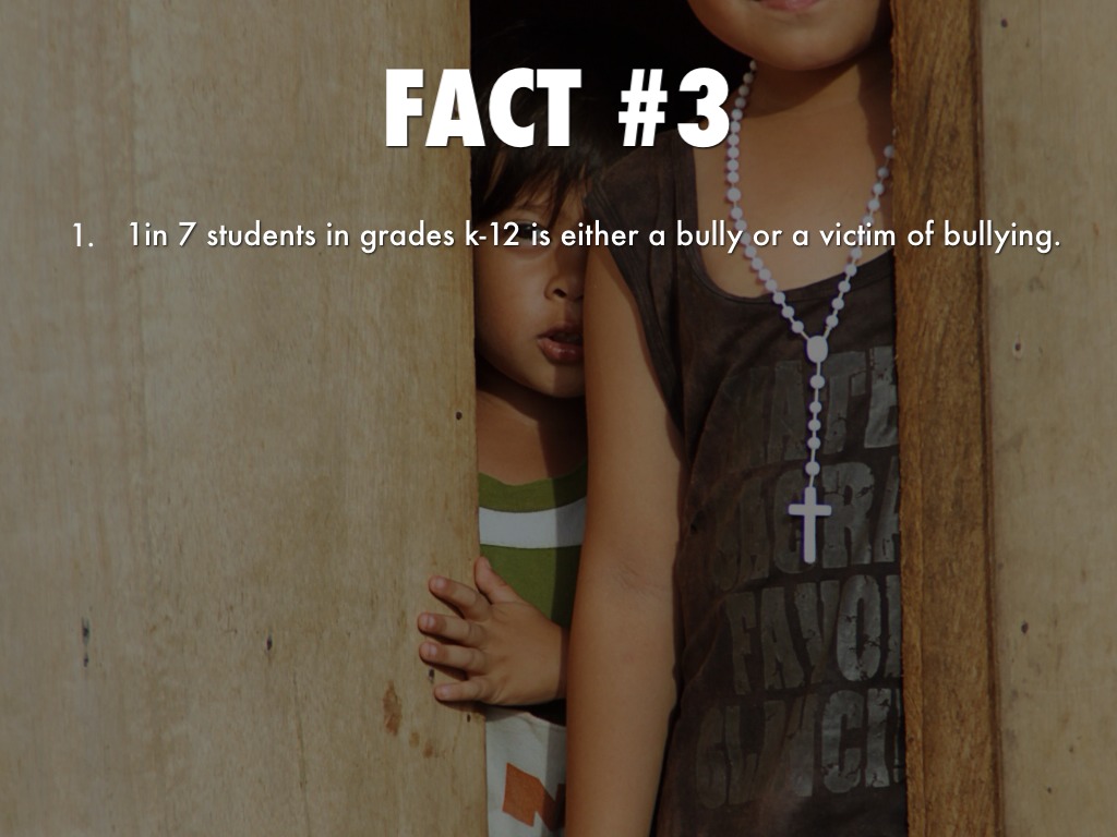 1in 7 students in grades k-12 is either a bully or a victim of bullying.
