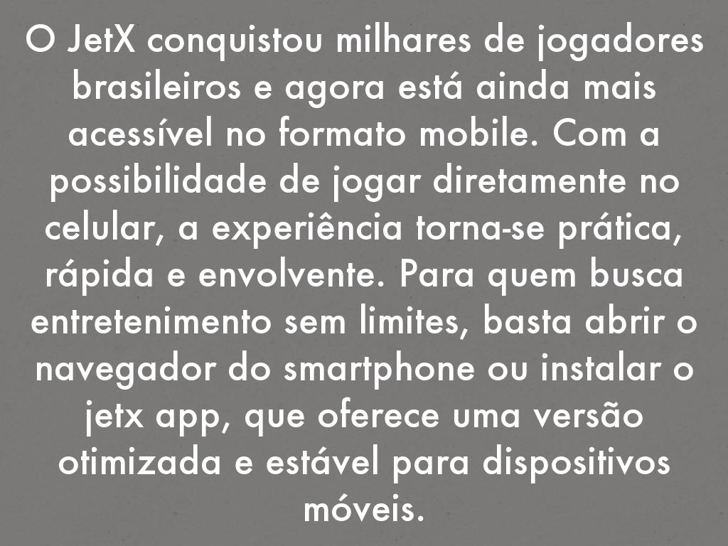 O JetX conquistou milhares de jogadores brasileiros e agora está ainda mais acessível no formato mobile. Com a possibilidade de jogar diretamente no celular, a experiência torna-se prática, rápida e envolvente. Para quem busca entretenimento sem limites, basta abrir o navegador do smartphone ou instalar o jetx app, que oferece uma versão otimizada e estável para dispositivos móveis.