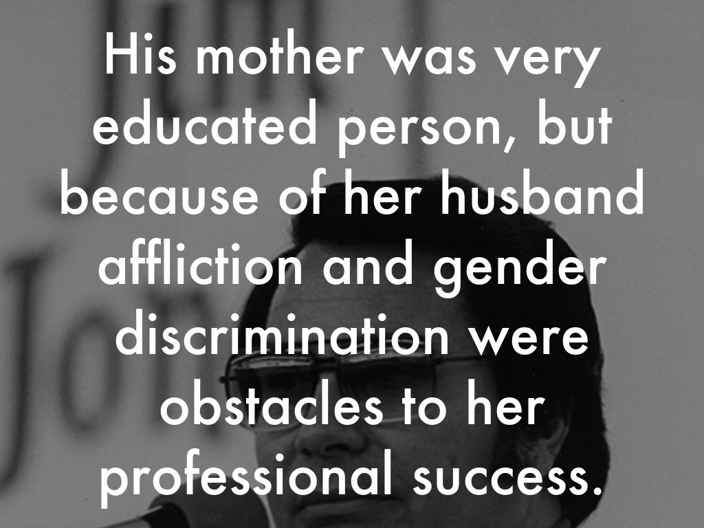 His mother was very educated person, but because of her husband affliction and gender discrimination were obstacles to her professional success.