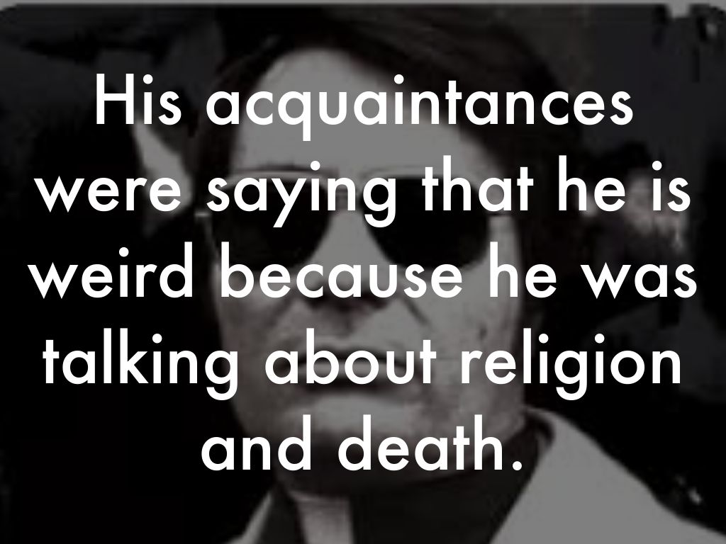 His acquaintances were saying that he is weird because he was talking about religion and death.