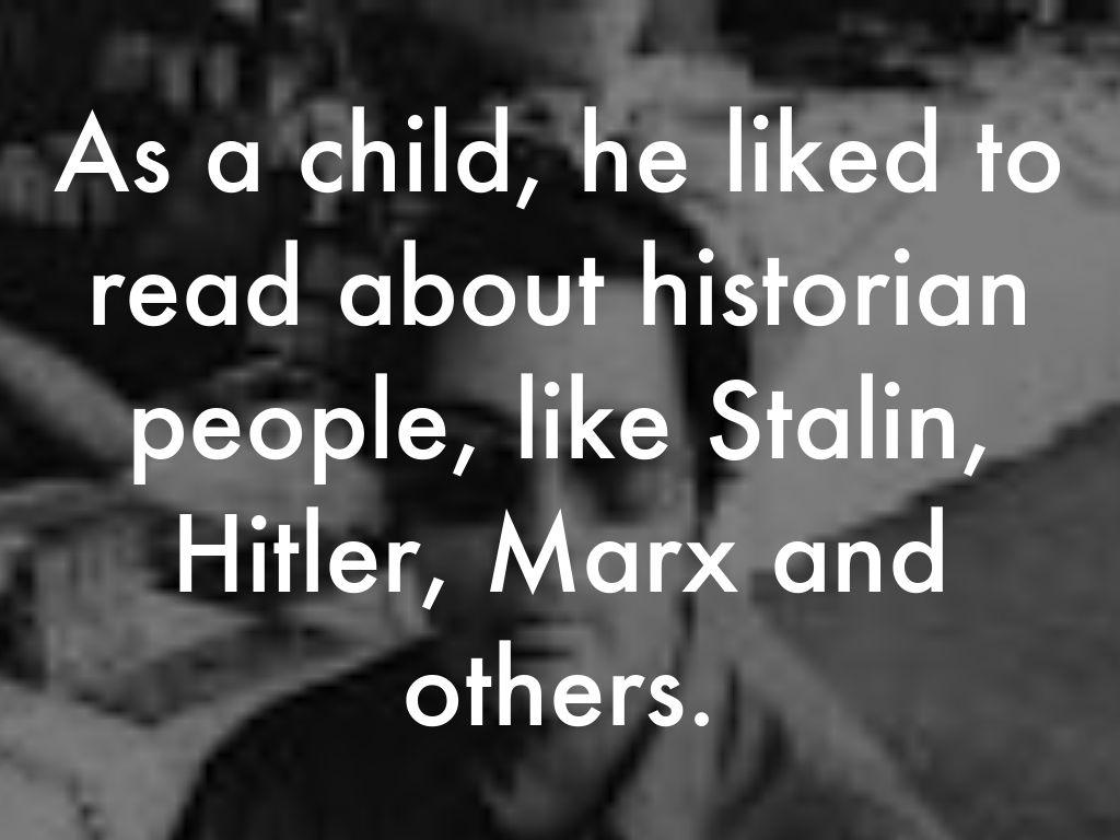 As a child, he liked to read about historian people, like Stalin, Hitler, Marx and others.