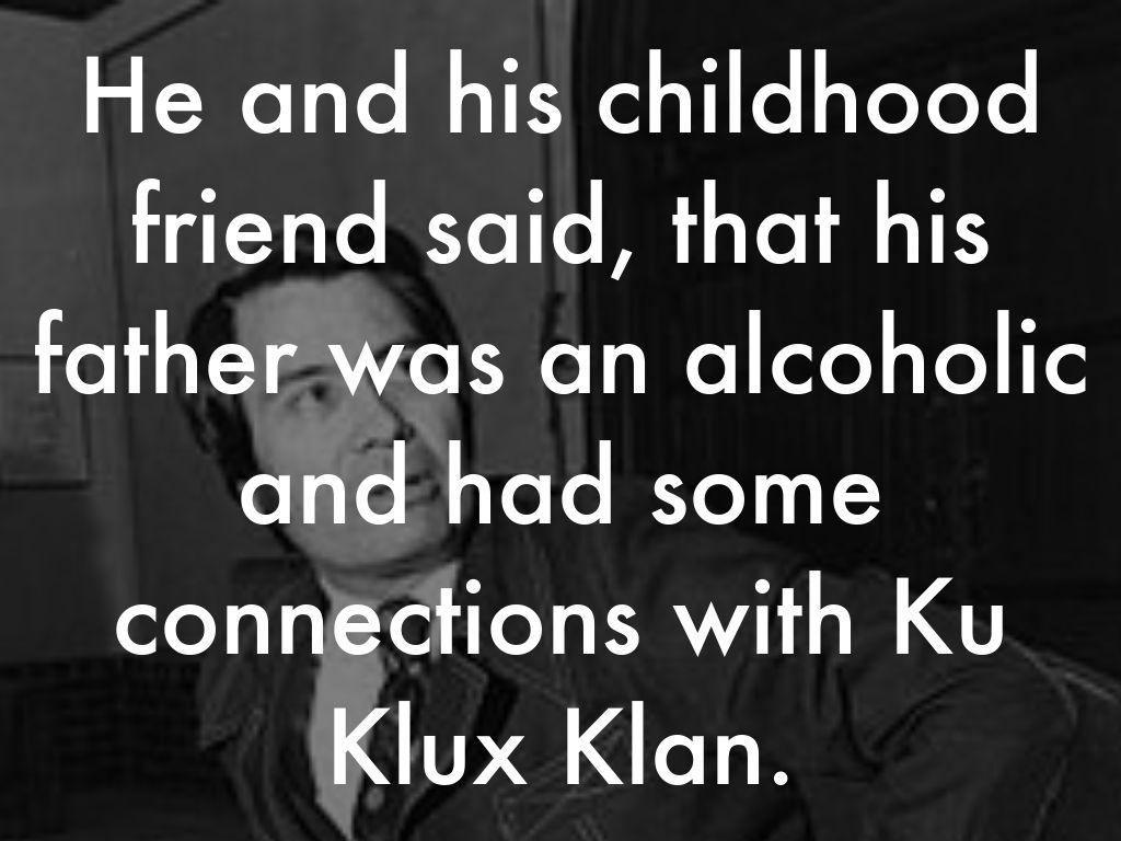 He and his childhood friend said, that his father was an alcoholic and had some connections with Ku Klux Klan.