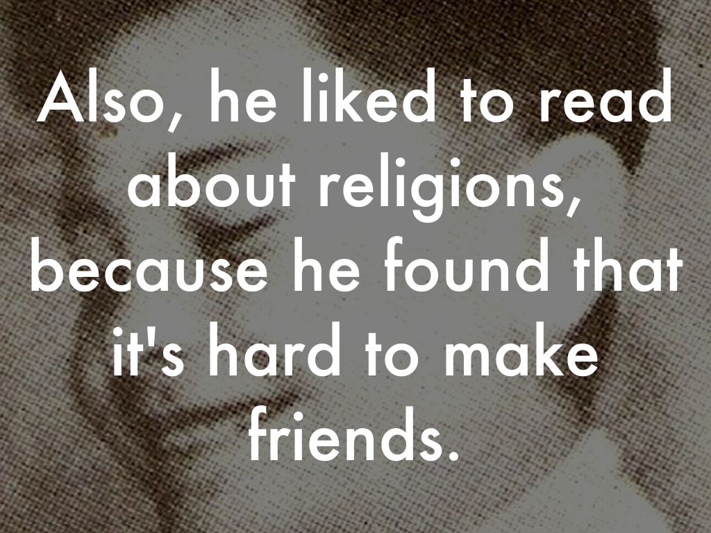 Also, he liked to read about religions, because he found that it's hard to make friends.