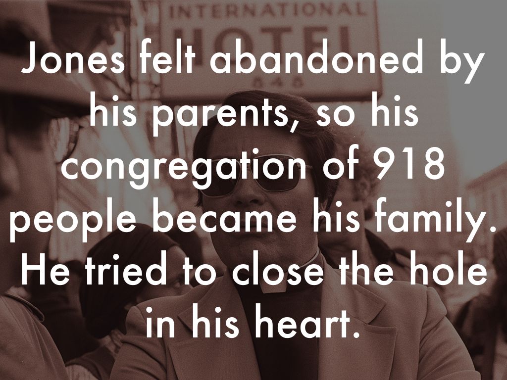 Jones felt abandoned by his parents, so his congregation of 918 people became his family. He tried to close the hole in his heart.