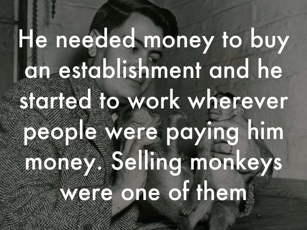 He needed money to buy an establishment and he started to work wherever people were paying him money. Selling monkeys were one of them