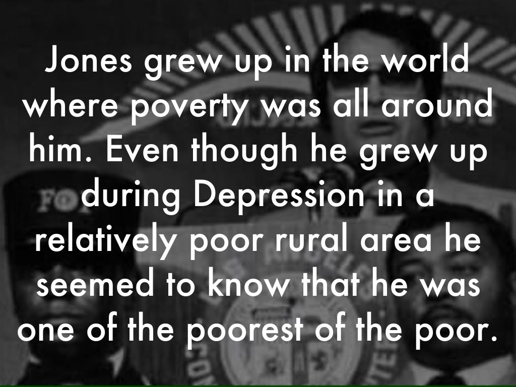 Jones grew up in the world where poverty was all around him. Even though he grew up during Depression in a relatively poor rural area he seemed to know that he was one of the poorest of the poor.